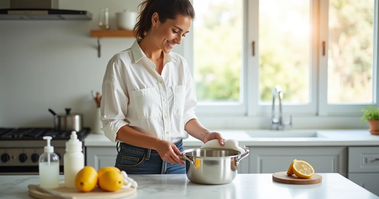 - Passo 9: Devolva o Brilho com Ácidos Naturais – Para restaurar o brilho e tirar aquelas manchinhas chatas, esfregue a panela com um pano embebido em vinagre branco ou suco de limão. Enxágue bem depois.