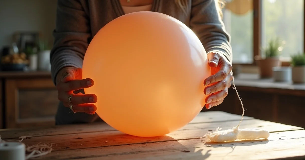 4. Passo 4: A Secagem que Transforma – Pendure a bexiga em um local arejado, usando um barbante preso no nó. Deixe secar COMPLETAMENTE. Isso pode levar mais de 24 horas, dependendo da umidade do ar e da quantidade de cola. Paciência é a chave aqui! A estrutura precisa ficar bem dura e rígida.