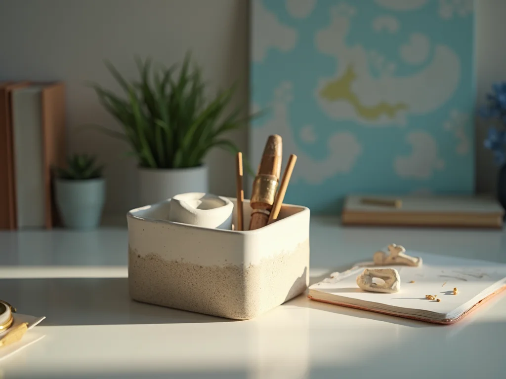 “Para criar um organizador de escritório de cerâmica, a técnica de modelagem por placas é a mais indicada para iniciantes, permitindo o uso tanto de cerâmica fria (que seca ao ar) quanto de argila tradicional (que requer queima em forno profissional).”