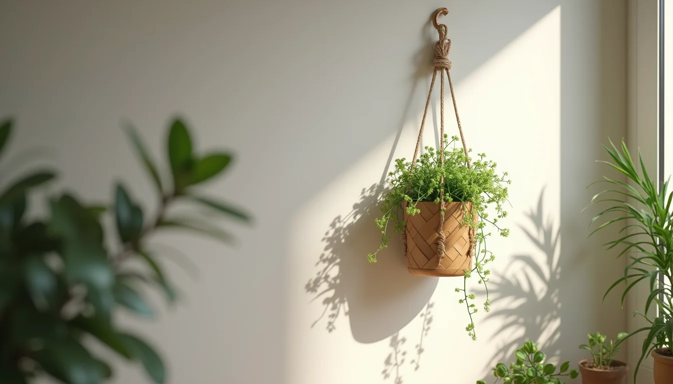 A escolha dos materiais é crucial. Para madeira, pense em resistência e acabamento. Para cordas, a durabilidade e a estética contam. Parafusos e buchas devem ser sempre compatíveis com o peso da planta e o tipo de parede.
