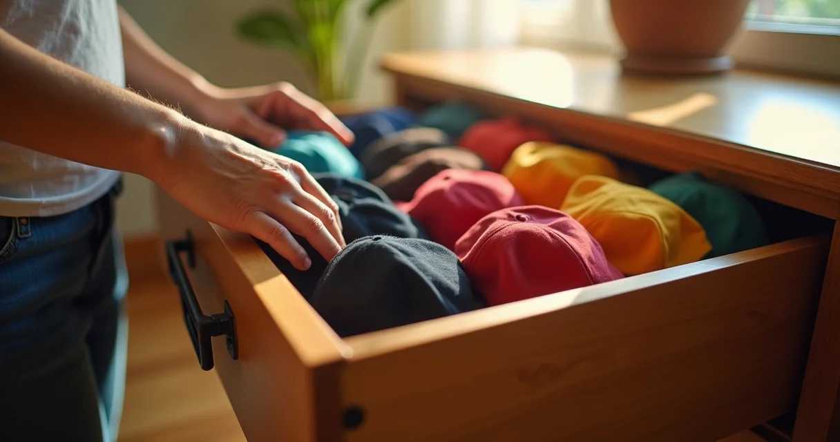 Descubra como organizar a gaveta de bonés com uma técnica simples que acaba com a bagunça em segundos. Vamos transformar seu caos em ordem prática e visual.
