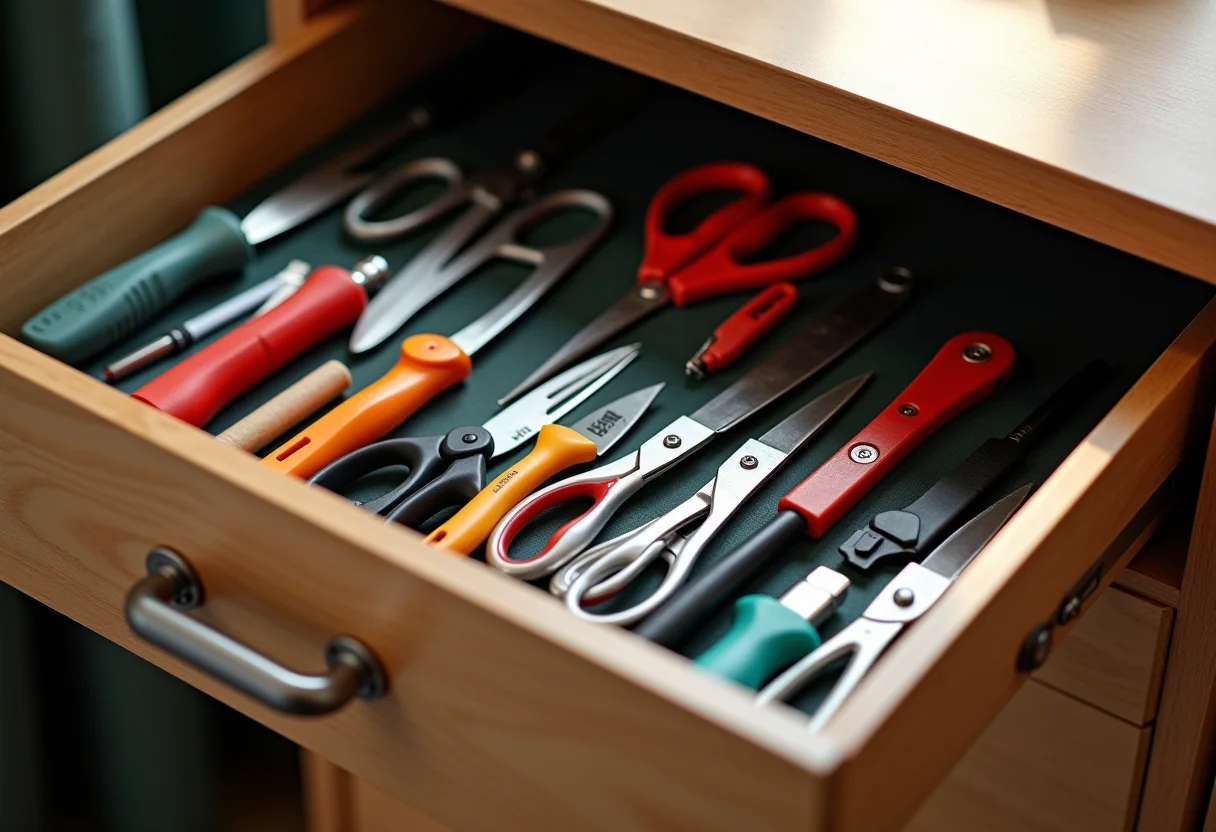 Quem trabalha com artesanato, costura ou modelismo sabe: a gaveta de tesouras e estiletes pode virar um verdadeiro caos! Aquele emaranhado de ferramentas não só dificulta o trabalho, como também aumenta o risco de acidentes. Mas, fica tranquila! Com as dicas que preparei, você vai transformar essa bagunça em um oásis de organização e praticidade.