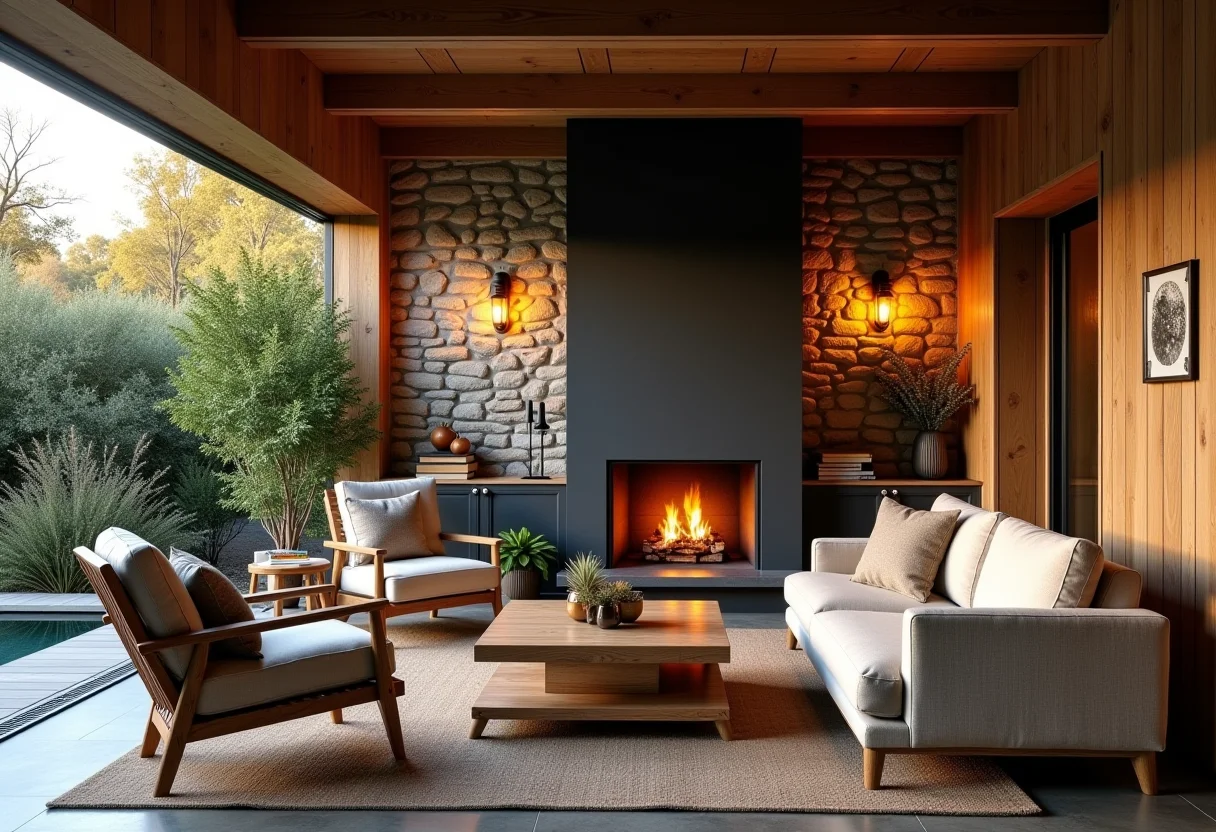 * Iluminação Geral: Luminárias de teto ou pendentes para iluminar toda a área. Refletores direcionáveis para destacar o fogão a lenha. Sensores de movimento para economizar energia.