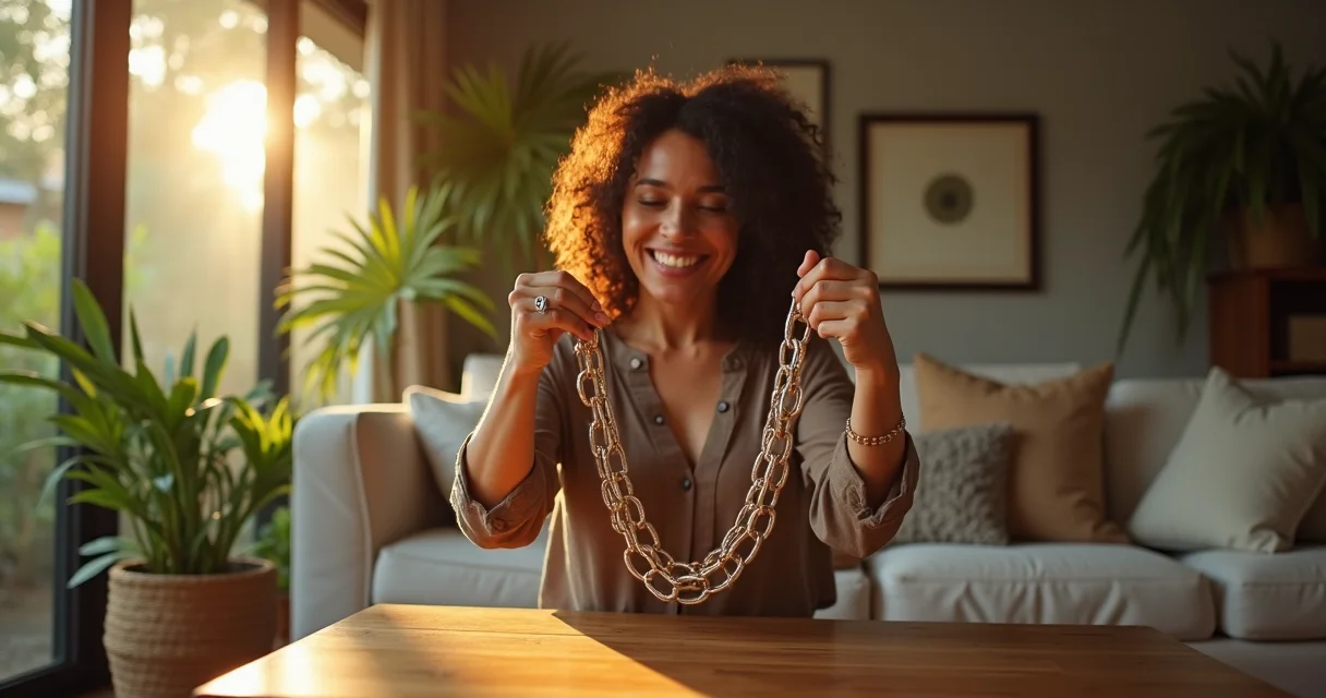 Aqui está o detalhe: para mesas de centro e aparadores, modelos curtos com 3 a 5 elos costumam ser a escolha mais segura e harmoniosa. Pode confessar, quantas vezes você já viu uma corrente desproporcional tentando chamar atenção onde não cabia?