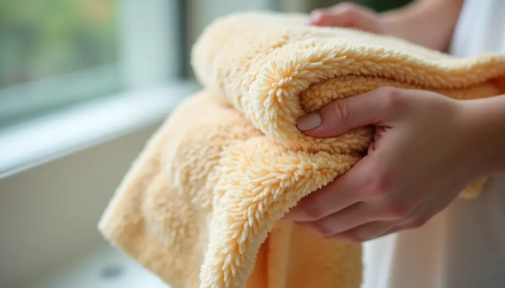 O teste da luz: Se puder ver a toalha pessoalmente ou em fotos/vídeos detalhados, estique um pouco a trama. Se a luz passar muito fácil, a densidade é baixa e a absorção será comprometida. Evite essas.
