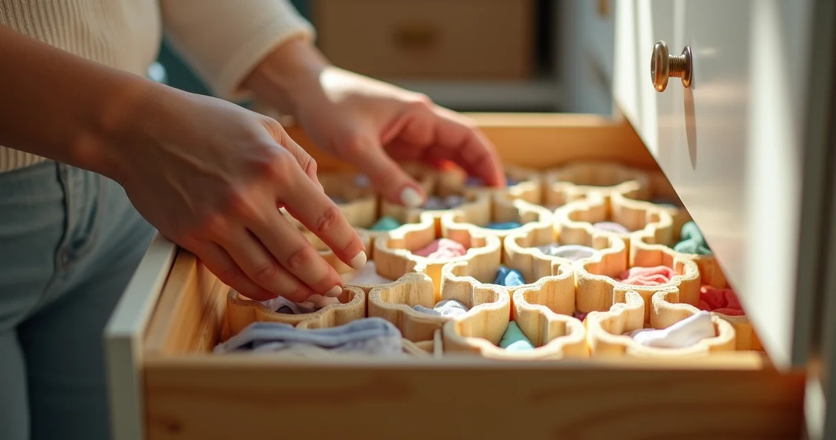 Seu primeiro passo hoje? Pegue uma gaveta. Só uma. Separe as roupas por tamanho, coloque uma colmeia organizadora e feche. Pronto. Você já sentiu a diferença.