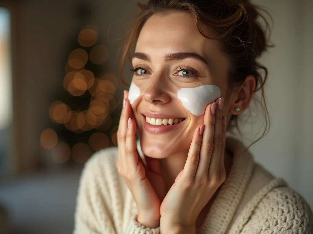 - Produtos de skincare hidratantes: limpador suave, tônico sem álcool, sérum e hidratante facial rico.